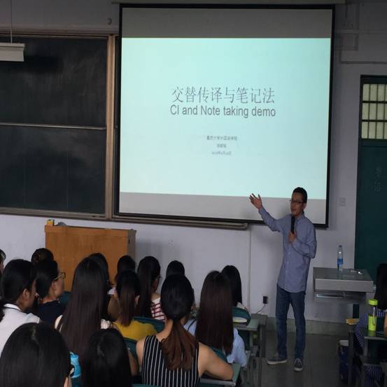 14日上午 9:50-12:00,陈毅强老师为全院师生做了题为《交替传译与笔记法》的交替传译课堂展示。课堂授课的主要内容包括交替传译的难度、特点、方法与教学实践等,并就这一课程作了简介。在课堂展示环节,他为师生做了交替传译笔译法中的无笔记记忆训练与笔译训练做了印象深刻的现场练习,就学生在口译实践中的听辩与语言传达作了细致的点评。本次名师讲坛信息量大,内容新颖,既开阔了大家的专业视野,丰富了知识,又激发了全院教生口译与口语训练的极大兴趣。
