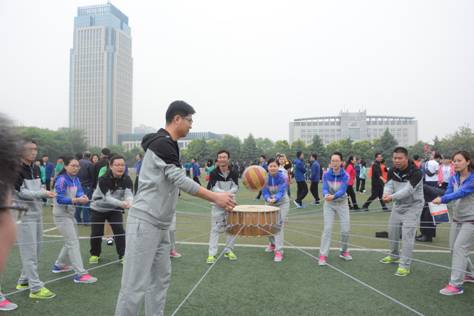 同心鼓:教职工赛前周密安排,紧张排练,,组同心鼓,在比赛中齐心协力,掌握平衡与配合,做到人球合一,两分钟之内共完成253次,获得同心鼓二等奖。